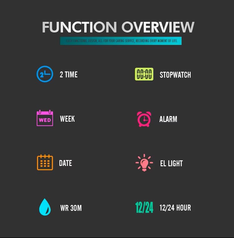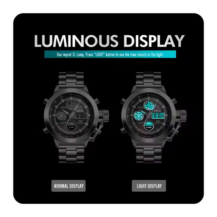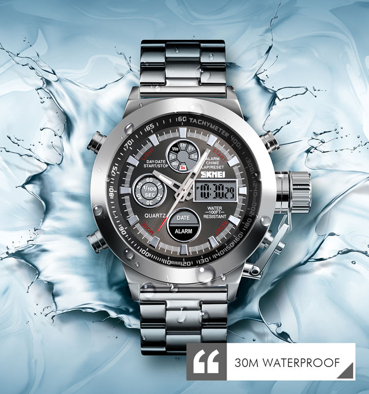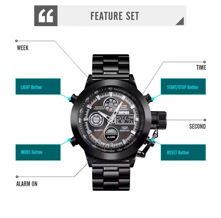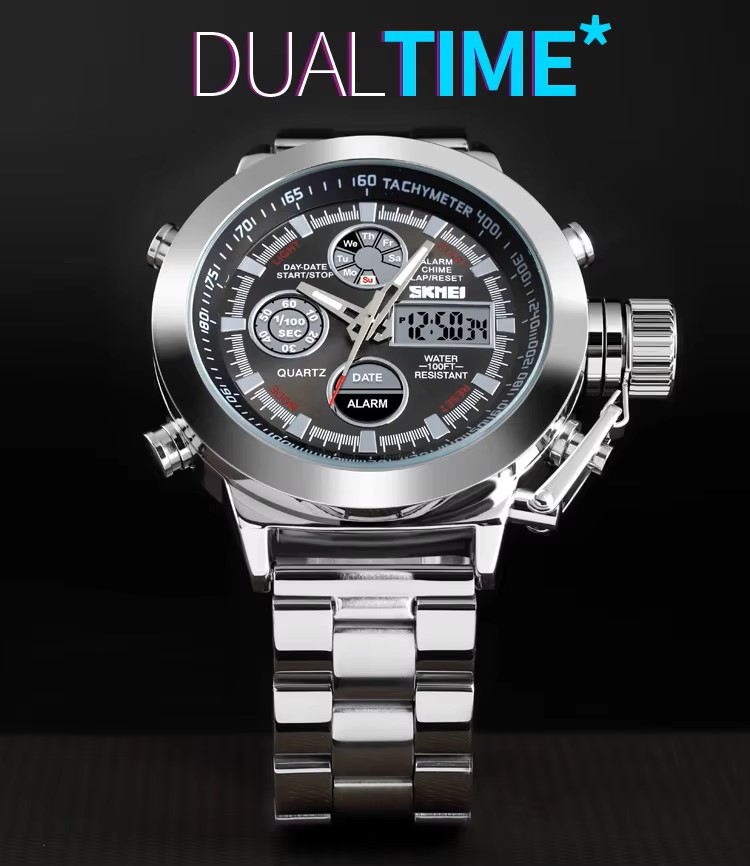 | Features: | 2 Time, Chrono, Alarm, Date, Week, Led Light, Count down, 12/24 Hour Clock, Anti Magnetic, Analog-Digital |