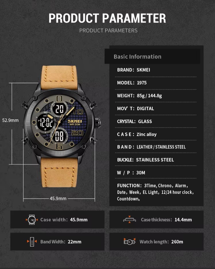 SKMEI 1975 Multi-Function Analog Digital Steel Watch
